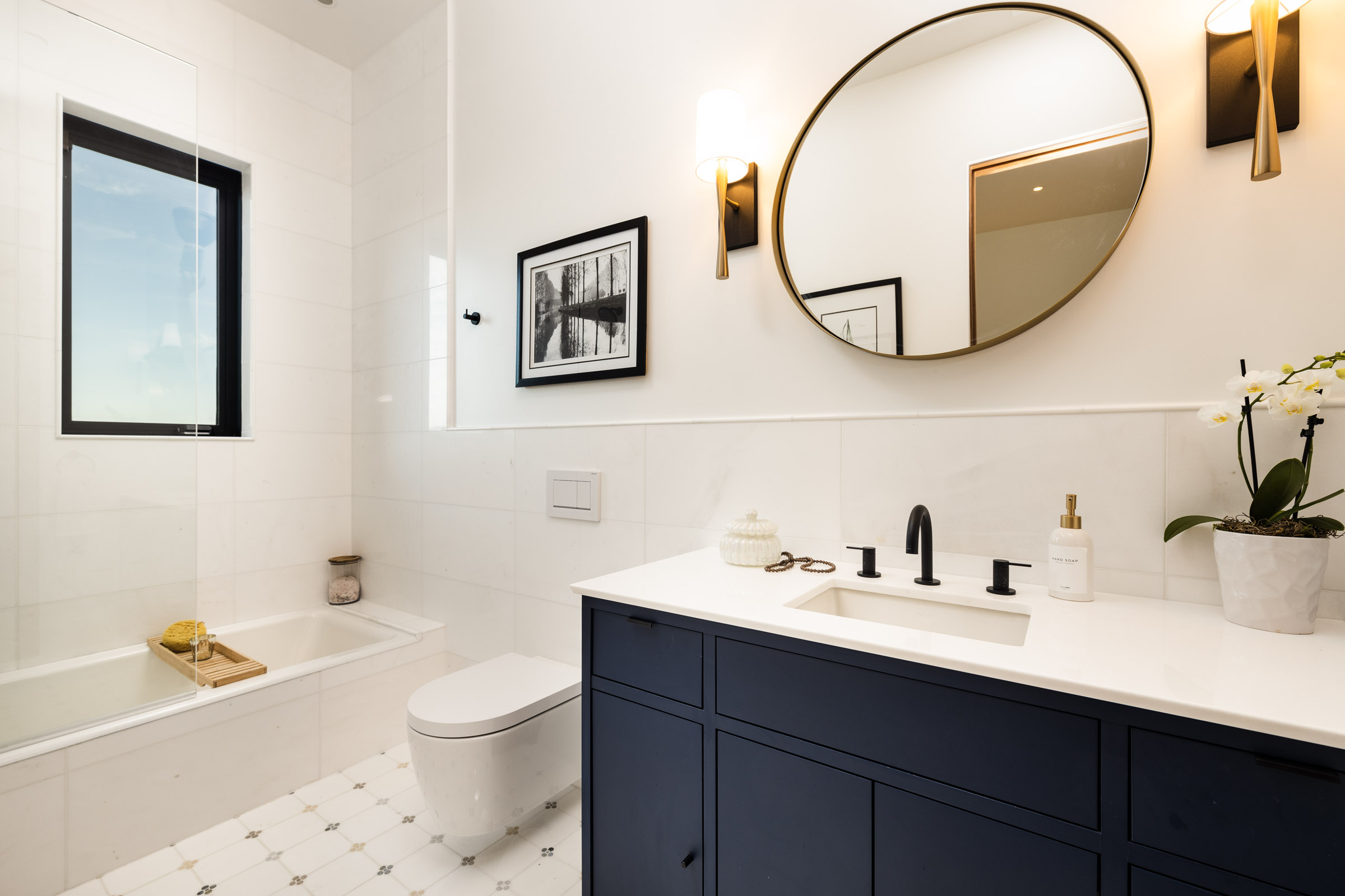 The home’s lower level offers three more bedrooms all boasting 12 foot ceilings and oversized windows framing both mountain and ocean views. One of the bedrooms could serve as a secondary primary suite or would be perfect for guests thanks to its private, end of hall location and full ensuite bathroom.